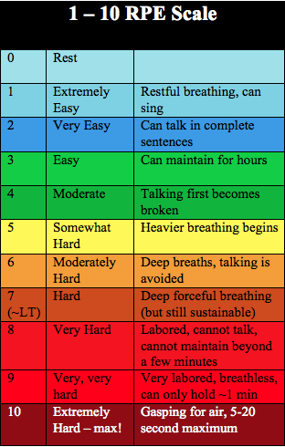 - Keep the effort manageable but effective, staying within the 3-5 range on the BORG scale (see image below)