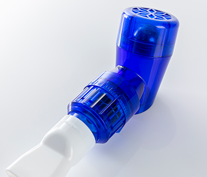 - Inhale quickly and deeply through the device, expanding your lungs all the way to the top.